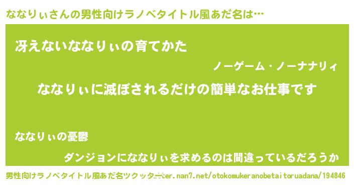 | 伝説のあだ名 | 『覚醒した僧侶ななりぃ』 |