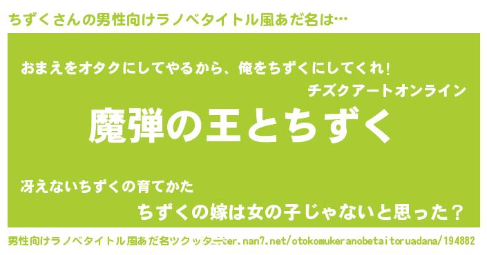 | 女子向けラノベタイトル風あだ名 | 『ちずくが死なない童話 林檎のちずくの診療簿』 |