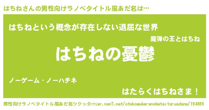 | 胡散臭い通販商品みたいなあだ名 | 『必ず成功する水晶球…その名も「はちね」』 |