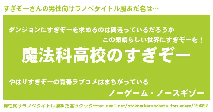 | 女子向けラノベタイトル風あだ名 | 『すぎぞーアンティーク』 |
