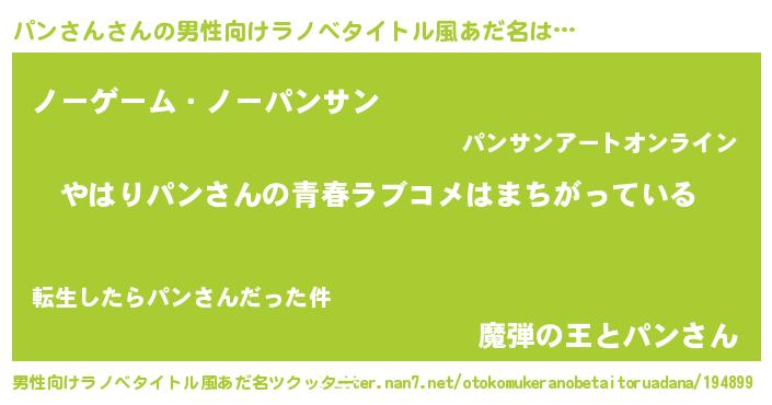 | 意味不明あだ名 | 『パンさんフォーエバー』 |