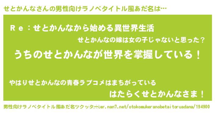 | 伝説のあだ名 | 『覚醒した遊び人せとかんな』 |