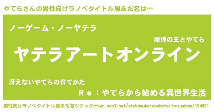 | 女子向けラノベタイトル風あだ名 | 『誰かこのやてらを説明してください! ~契約から始まるウェディング~』 |
