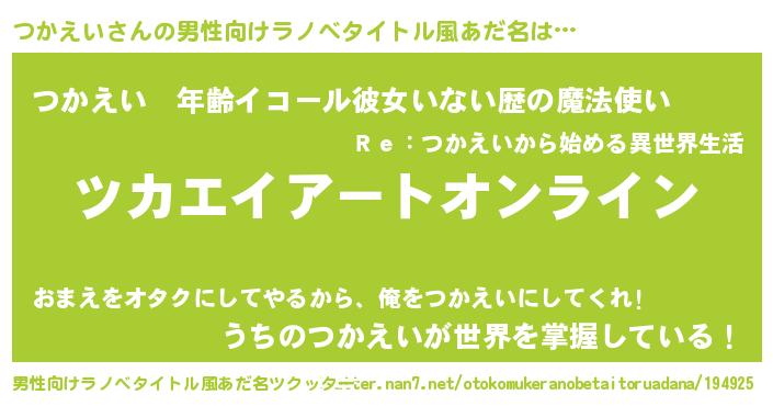 つかえいさんの男性向けラノベタイトル風あだ名をツクッター!