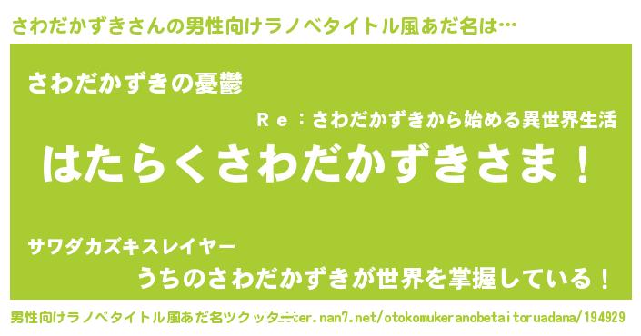 | 胡散臭い通販商品みたいなあだ名 | 『必ず成功する霊験あらたかなお札…その名も「さわだかずき」』 |