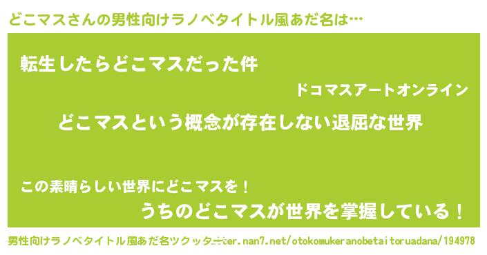 | 女子向けラノベタイトル風あだ名 | 『異世界で失敗しない100のどこマス』 |