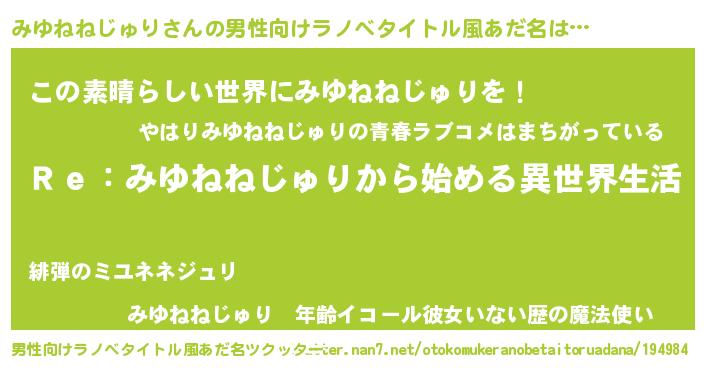 みゆねねじゅりさんの男性向けラノベタイトル風あだ名をツクッター!