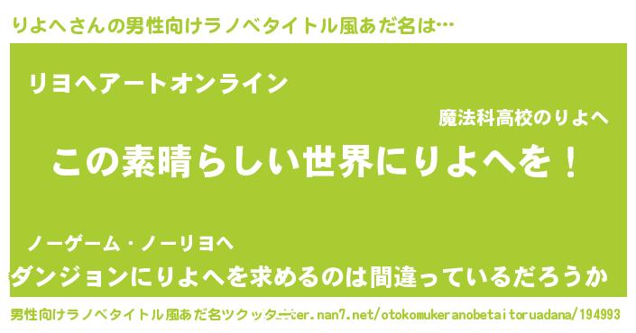 | 女子向けラノベタイトル風あだ名 | 『乙女ゲームの破滅フラグしかない悪役りよへに転生してしまった…』 |