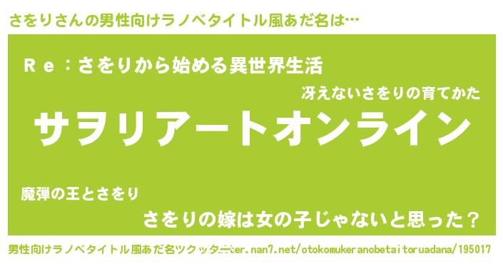 | 胡散臭い通販商品みたいなあだ名 | 『モテモテ間違いなし霊験あらたかなお札…その名も「さをり」』 |