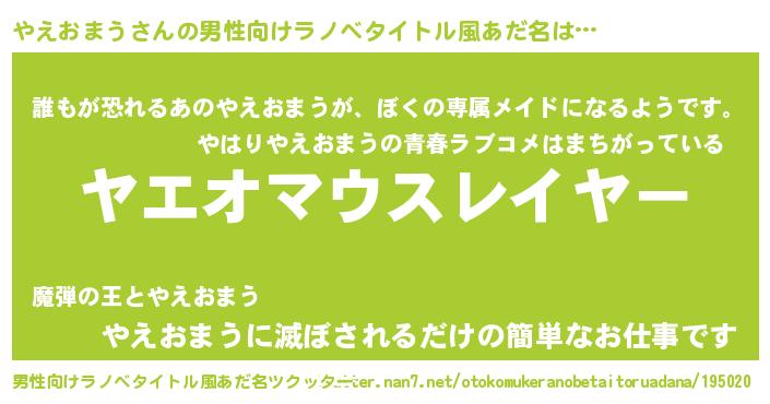 | ヒーロー風カッコイイあだ名 | 『ネオヤエオマウ』『仮面ヤエダー』 |