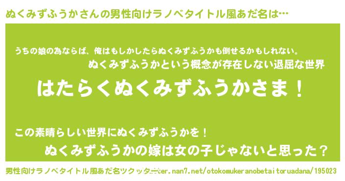 | 胡散臭い通販商品みたいなあだ名 | 『幸せが訪れる高級そうな絵画…その名も「ぬくみずふうか」』 |