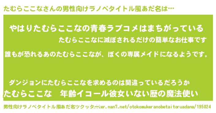 | 女子向けラノベタイトル風あだ名 | 『たむらここなの契約王妃』 |