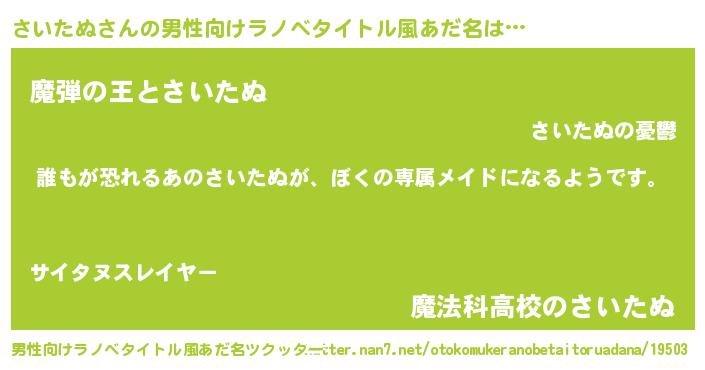 | 伝説のあだ名 | 『古文書に記された吟遊詩人さいたぬ』 |