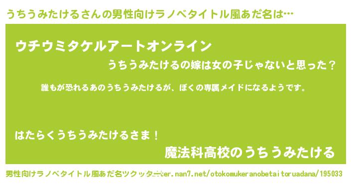 | 意味不明あだ名 | 『永久保存うちうみたける』 |