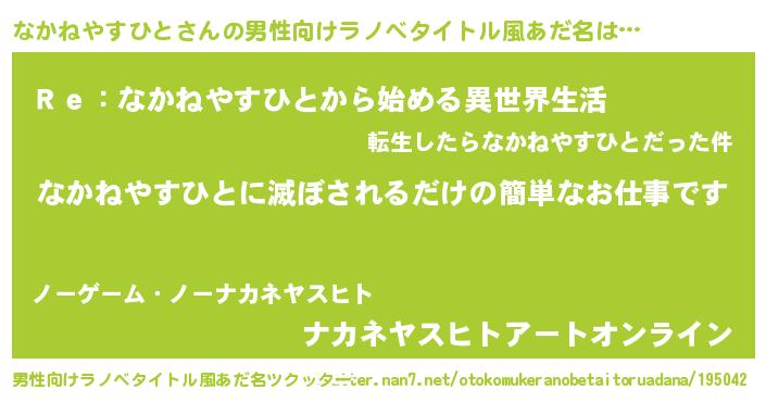 | 意味不明あだ名 | 『自称なかねやすひと』 |