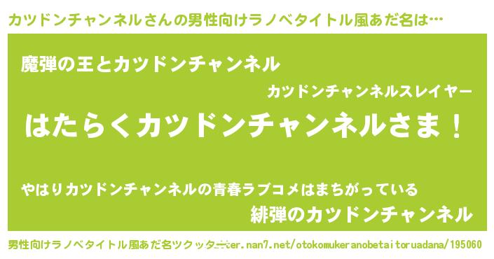 | 胡散臭い通販商品みたいなあだ名 | 『ハリウッド女優が絶賛した100年もののヴィンテージワイン…その名も「カツドンチャンネル」』 |