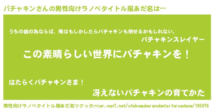 | 意味不明あだ名 | 『住所不定無職バチャキン(6歳)』 |