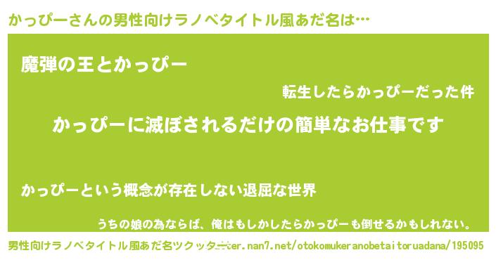 | 意味不明あだ名 | 『住所不定無職かっぴー(47歳)』 |