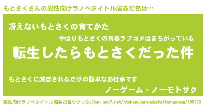 もとさくさんの男性向けラノベタイトル風あだ名をツクッター!
