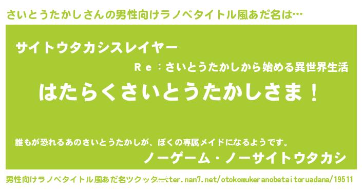 | ヘコむあだ名 | 『さいとうたかし(遠い目)』『さいにゅー』 |