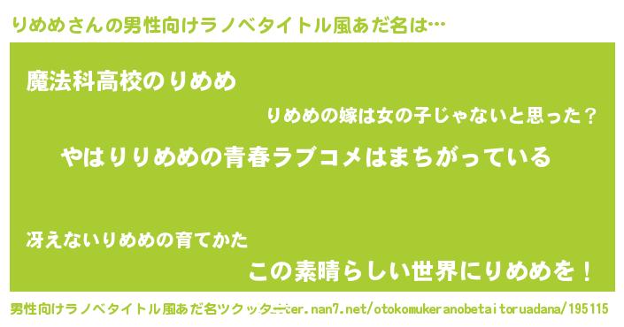 | 女子向けラノベタイトル風あだ名 | 『りめめの雑貨屋さん』 |