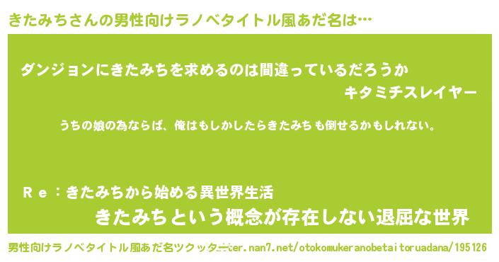 | 女子向けラノベタイトル風あだ名 | 『きたみちの婚約者』『闇のきたみち』 |