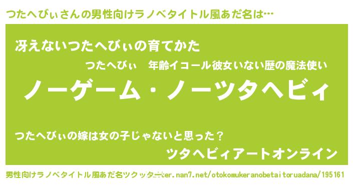| ヒーロー風カッコイイあだ名 | 『慈愛の使者つたへびぃ』『幻影騎士ツタ』 |