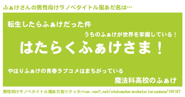 | 胡散臭い通販商品みたいなあだ名 | 『テレビで話題の冬虫夏草…その名も「ふぁけ」』 |