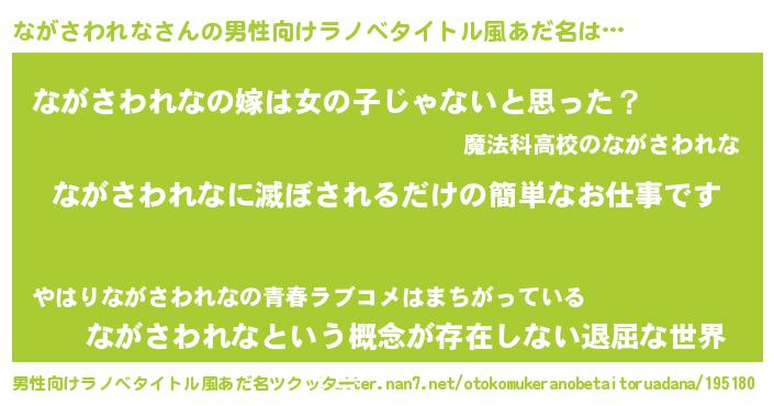 | 胡散臭い通販商品みたいなあだ名 | 『伝統あるネックレス…その名も「ながさわれな」』 |