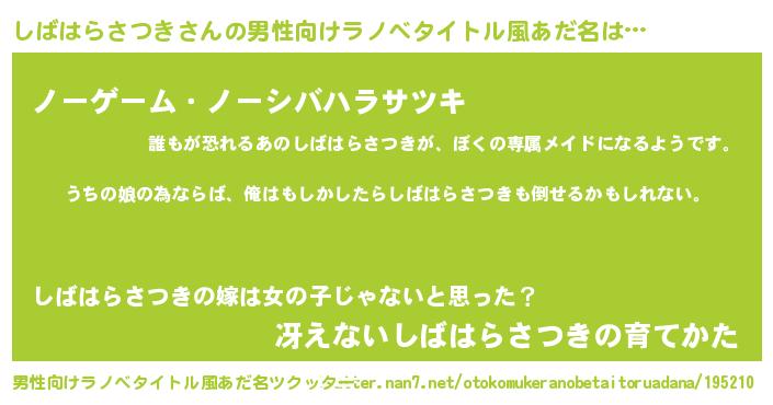 | 胡散臭い通販商品みたいなあだ名 | 『運命の人と巡り会える高級そうな壺…その名も「しばはらさつき」』 |