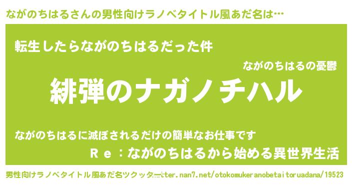 | 女子向けラノベタイトル風あだ名 | 『シンデレラながのちはる家の靴箱館』 |