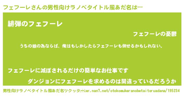 | 女子向けラノベタイトル風あだ名 | 『フェフーレの婚約者』 |
