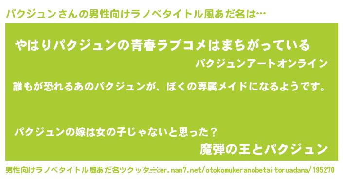 | 女子向けラノベタイトル風あだ名 | 『異世界でカフェパクジュンを開店しました。』 |