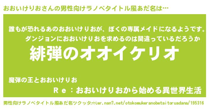 | ヘコむあだ名 | 『おおいけりお(笑)』『おおを』 |