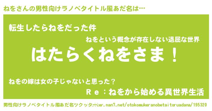 | ヘコむあだ名 | 『ねを(遠い目)』『ねをっ子』 |