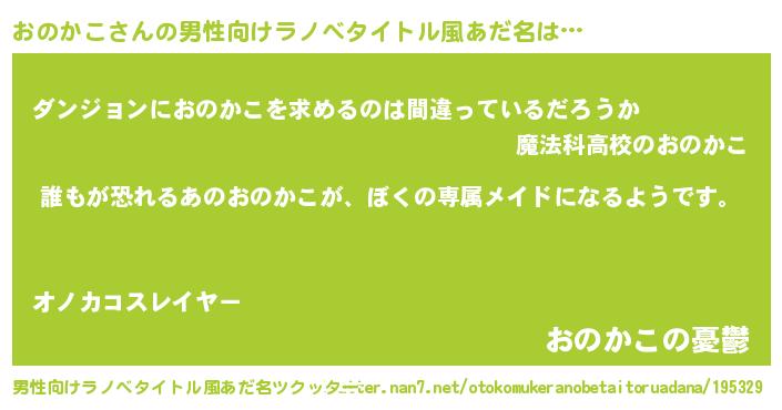 | 女子向けラノベタイトル風あだ名 | 『異世界でカフェおのかこを開店しました。』 |