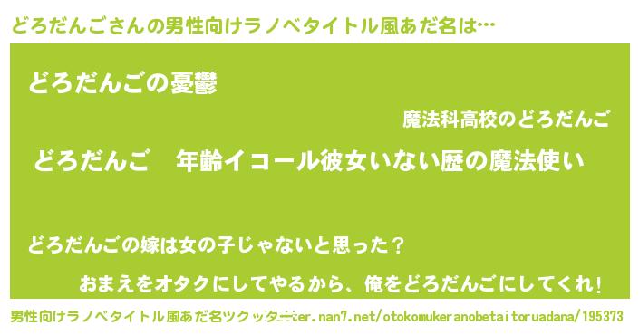 | 女子向けラノベタイトル風あだ名 | 『どろだんごの玉の輿計画!』 |