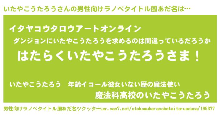 | 胡散臭い通販商品みたいなあだ名 | 『必ず成功する水晶球…その名も「いたやこうたろう」』 |