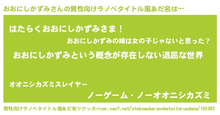 | 女子向けラノベタイトル風あだ名 | 『異世界で失敗しない100のおおにしかずみ』 |