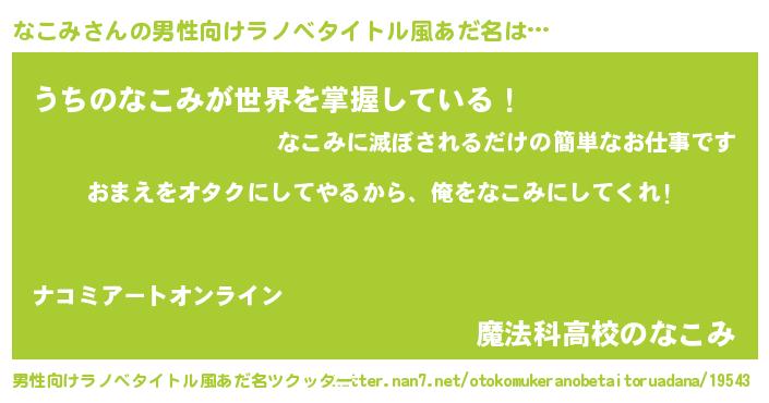 | 女子向けラノベタイトル風あだ名 | 『なこみ夫妻のなれそめ』 |