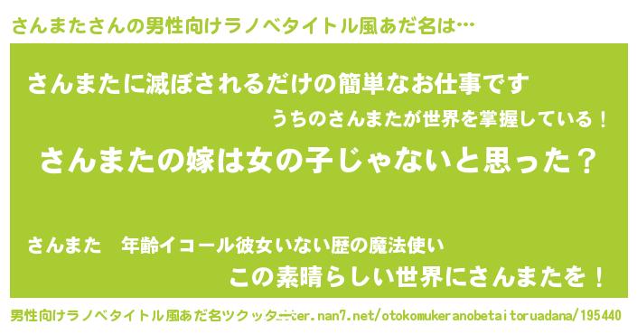 | 女子向けラノベタイトル風あだ名 | 『さんまた様がみてる』 |