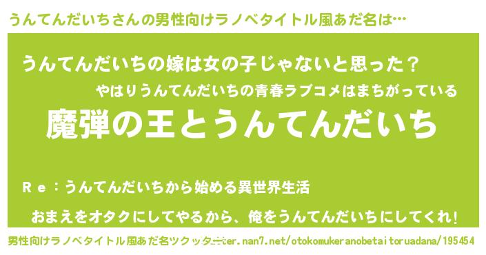 | 女子向けラノベタイトル風あだ名 | 『うんてんだいちが死なない童話 林檎のうんてんだいちの診療簿』 |