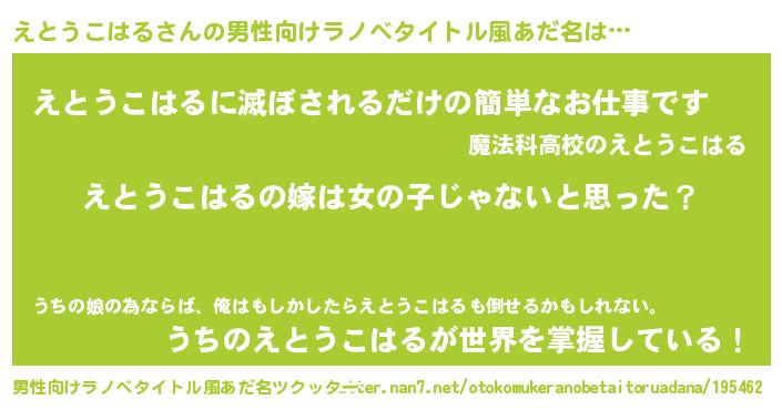 | 女子向けラノベタイトル風あだ名 | 『えとうこはるの卵を拾いまして』 |