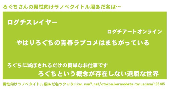 | 女子向けラノベタイトル風あだ名 | 『ろぐち伯爵の花嫁』 |