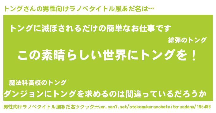 | 胡散臭い通販商品みたいなあだ名 | 『あなたにだけ特別に提供する世界で10本だけ現存している希少なブランデー…その名も「トング」』 |