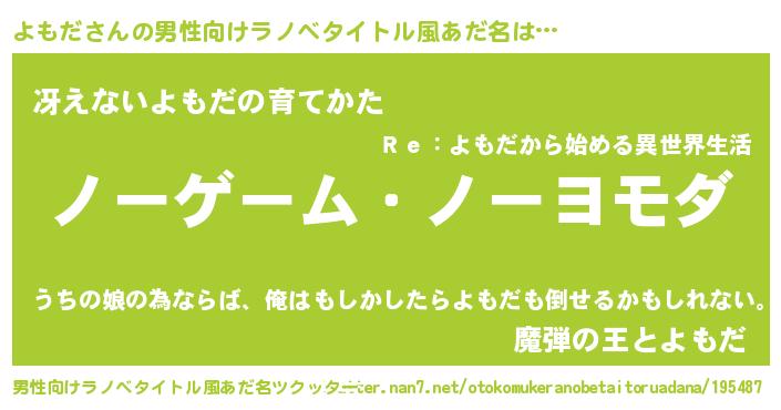 | 女子向けラノベタイトル風あだ名 | 『よもだ恋絵巻』『よもだ伯爵の花嫁』 |