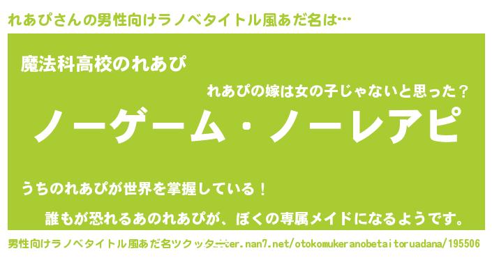 | ヒーロー風カッコイイあだ名 | 『天空の使者れあぴ』『ネオレアピ』 |