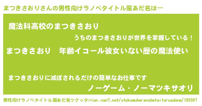 | 女子向けラノベタイトル風あだ名 | 『まつきさおりの玉の輿計画!』 |