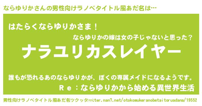 | ヘコむあだ名 | 『ならぷりん』『ならゆりか(苦笑)』 |