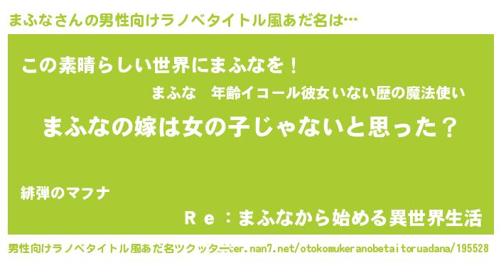 | 意味不明あだ名 | 『とにかく怪しいまふな』『自称まふな』 |